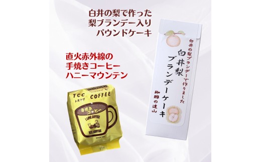 - コーヒーと梨ケーキのセット コーヒー豆 200g 自家焙煎 ハニーマウンテン 梨ブランデーケーキ パウンドケーキ 遠山珈琲