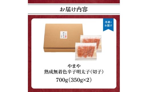 やまや 熟成無着色辛子明太子(切子) 700g 明太子 やまや めんたいこ 切子 ゆず 無着色 冷凍 ご飯のお供 おつまみ やまや 福岡県 八女市