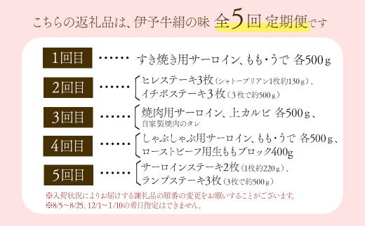 - 全5回定期便 黒毛和牛 伊予牛 絹の味 ★極★ 伊予牛絹の味 極プレミアム 堪能コース 愛媛県西条市 青野精肉店 【配送日時指定可・冷蔵】 ※関東以北・沖縄へのお届けは冷凍 | 黒毛和牛 A4~A5 お肉 牛肉 国産肉 国産牛肉 肉 和牛 おにく グルメ お取り寄せ おすすめ 国産 愛媛県 西条市 すき焼き ステーキ 焼肉 しゃぶしゃぶ