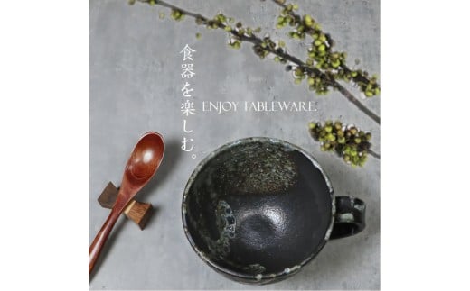 - 信楽焼 陶器製 丸型スープカップ (黒雹)
