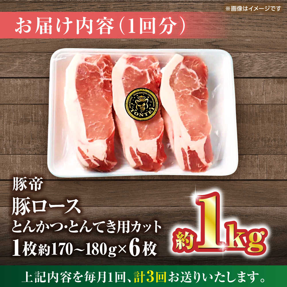 【ふるさと納税】【全3回定期便】豚帝 ロースとんかつ・とんてき用 カット 約1kg(1枚約170〜180g×6枚)【KRAZY MEAT(小田畜産)】[ZCP163]