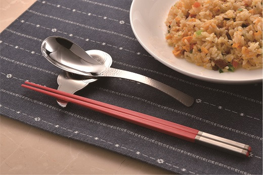 - 燕舞 中華箸・ステンレスレンゲ・雲型箸スプーンスタンド セット (赤) FC012081