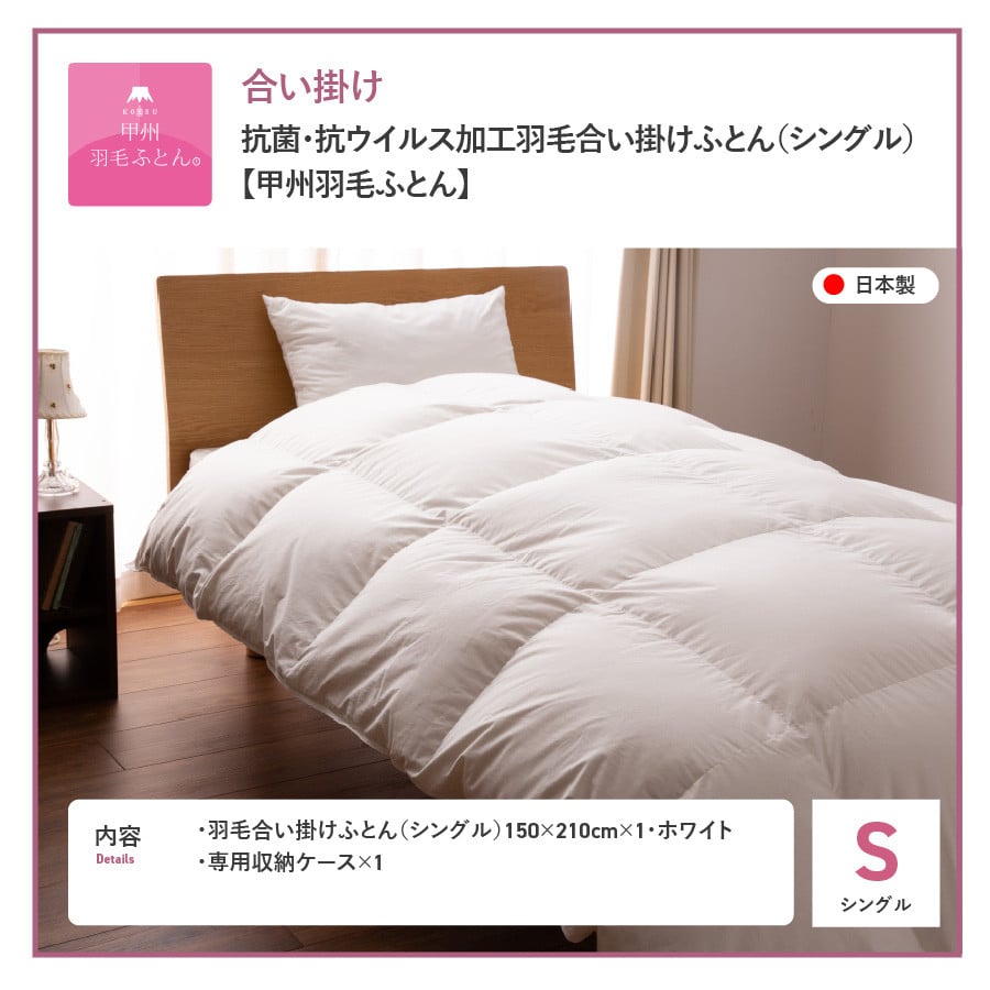 - 羽毛布団 【選べる配送時期】抗菌・抗ウイルス加工羽毛合い掛けふとん(シングル)【甲州羽毛ふとん】 合掛け 掛け布団 シングル 寝具 合い掛けふとん 抗菌 山梨 富士吉田