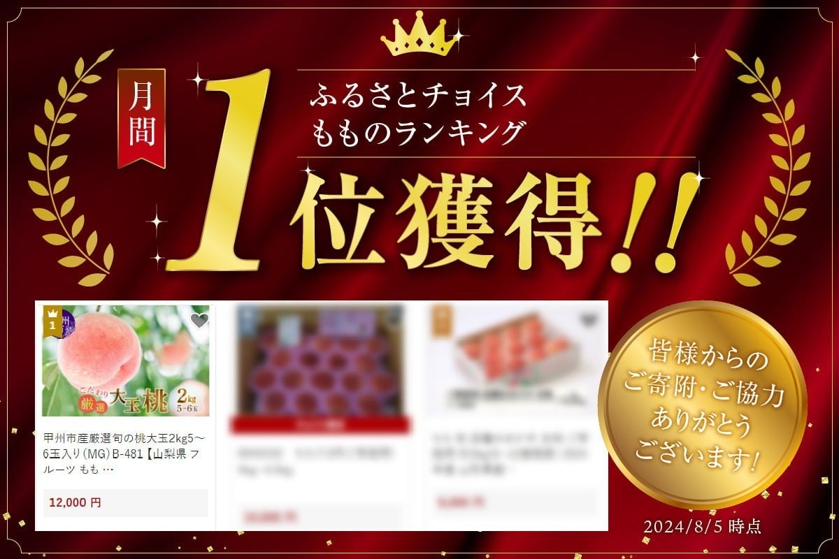 - B-481.【2022年先行予約】甲州市産厳選旬の桃大玉5~6ヶ入り