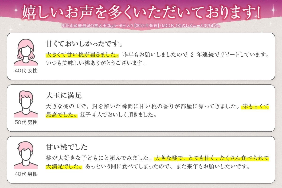 B-481.【2022年先行予約】甲州市産厳選旬の桃大玉5~6ヶ入り