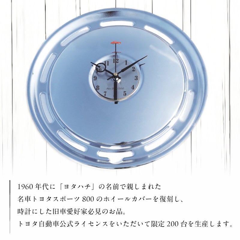 ヨタハチクロック トヨタ自動車公式ライセンス品 限定200台 シリアルナンバー入り【 岐阜県 可児市 時計 壁掛け ガレージ 旧車 パーツ 復刻 トヨタスポーツ800 ホイールカバー クオーツ時計 特別 日用品 雑貨 インテリア ギフト プレゼント 】