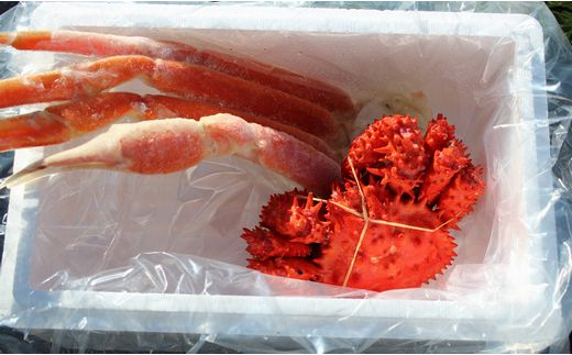 - A-57040【12/21まで年内配送】 本ズワイガニ足1肩、花咲ガニ1尾(計450~500g前後)