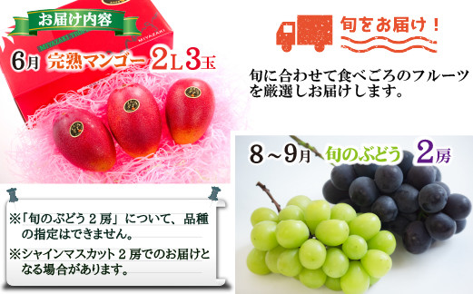 【先行予約/全2回・フルーツ定期便】小林市産 完熟マンゴー&旬のぶどう 定期便(フルーツ マンゴー ブドウ シャインマスカット 果物 定期便 2026 宮崎)