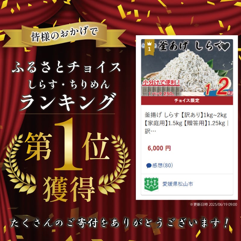 - カテゴリーランキング1位獲得!! 釜揚げ しらす 【訳あり】1kg~2kg 【家庭用】1.5kg 【贈答用】1.25kg | 訳ありしらす シラス丼 海の幸 釜揚げしらす 惣菜 弁当 簡単調理 加工品 グルメ 食品 魚介 小魚 魚 鮮魚 海鮮 シラス しらす しらすごはん shirasu sirasu SIRASU 人気シラス 愛媛県 松山市