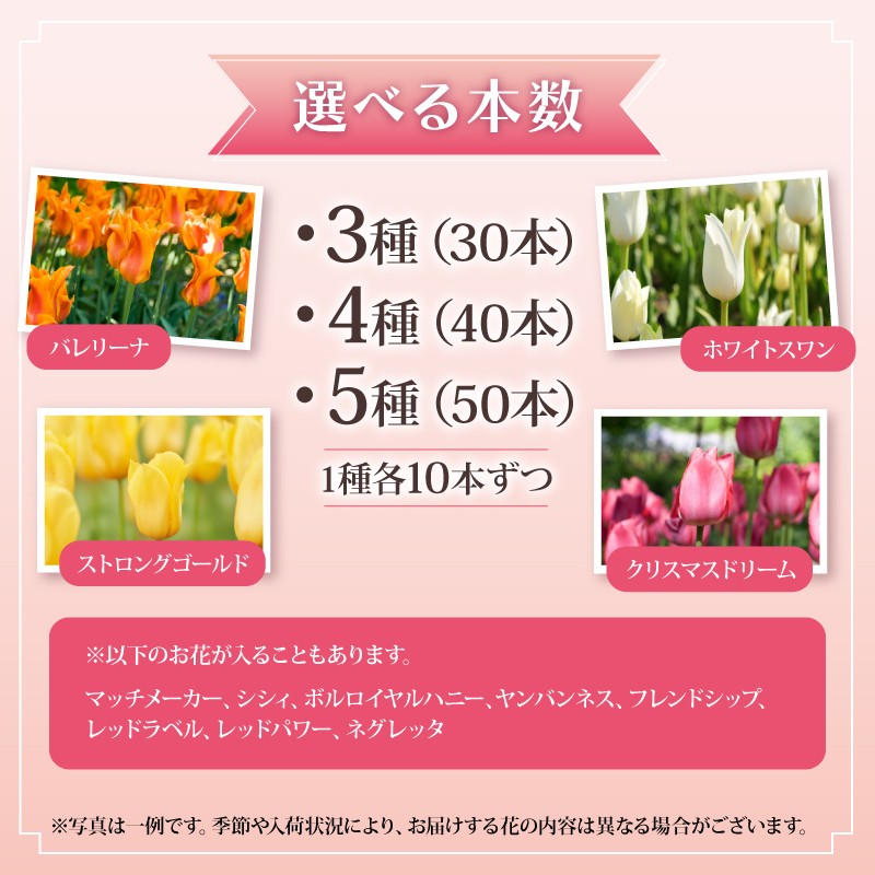 - 先行予約 チューリップ 選べる 30本~50本 色お任せ 3品種 花 お花 はな ちゅーりっぷ 春 インテリア 自宅用 JA北新潟 (北越後)新潟 新発田 JA004P