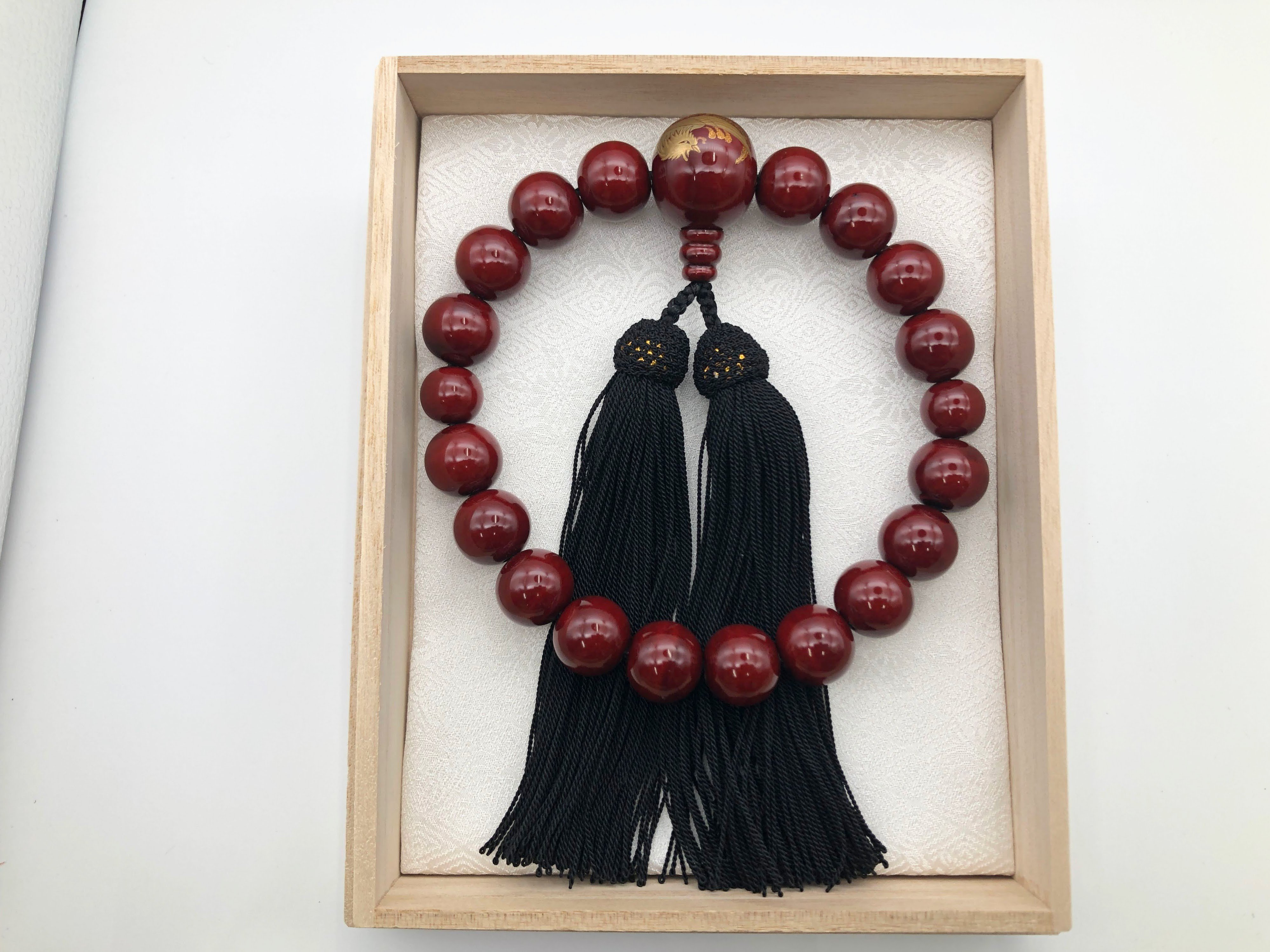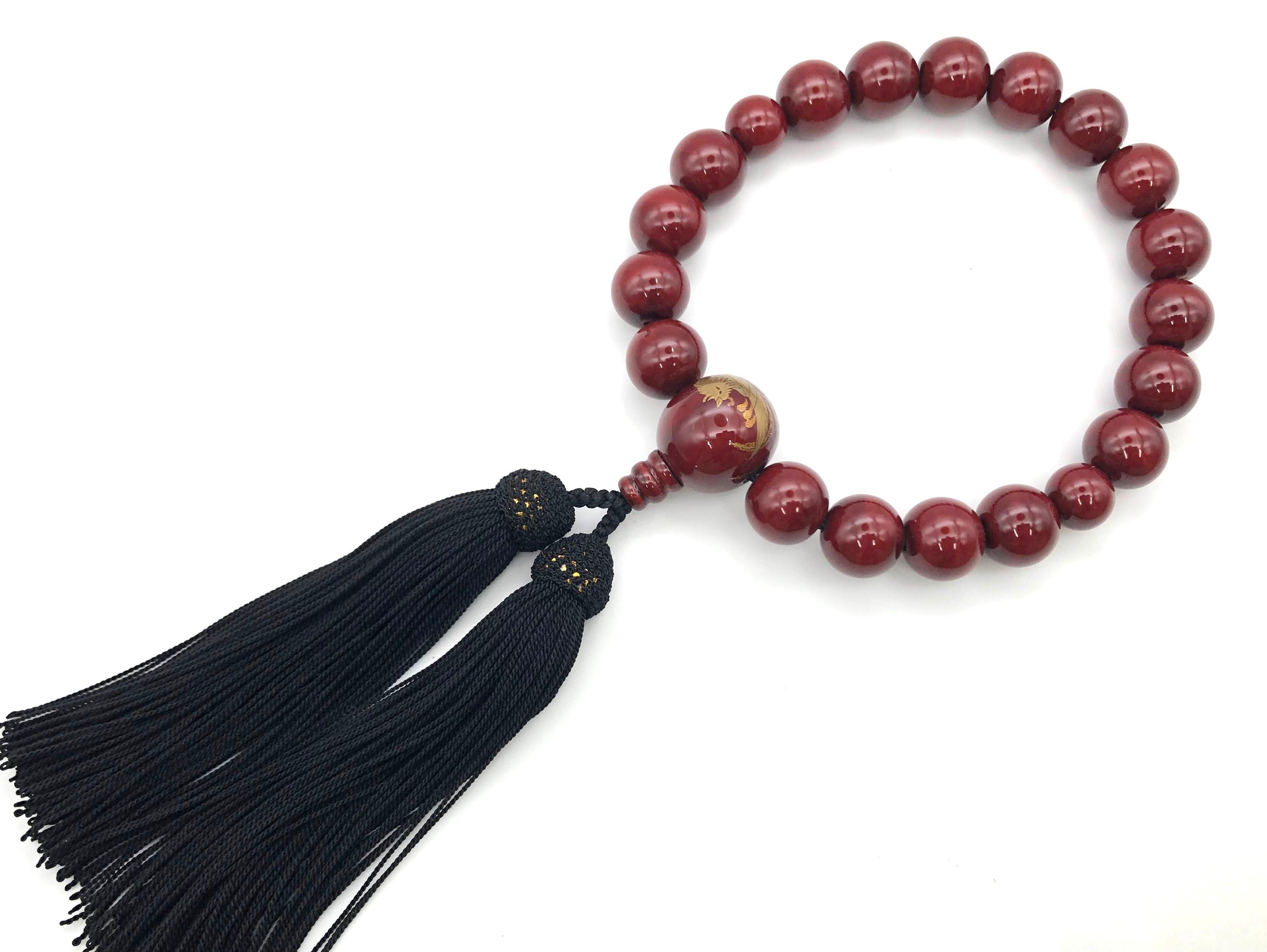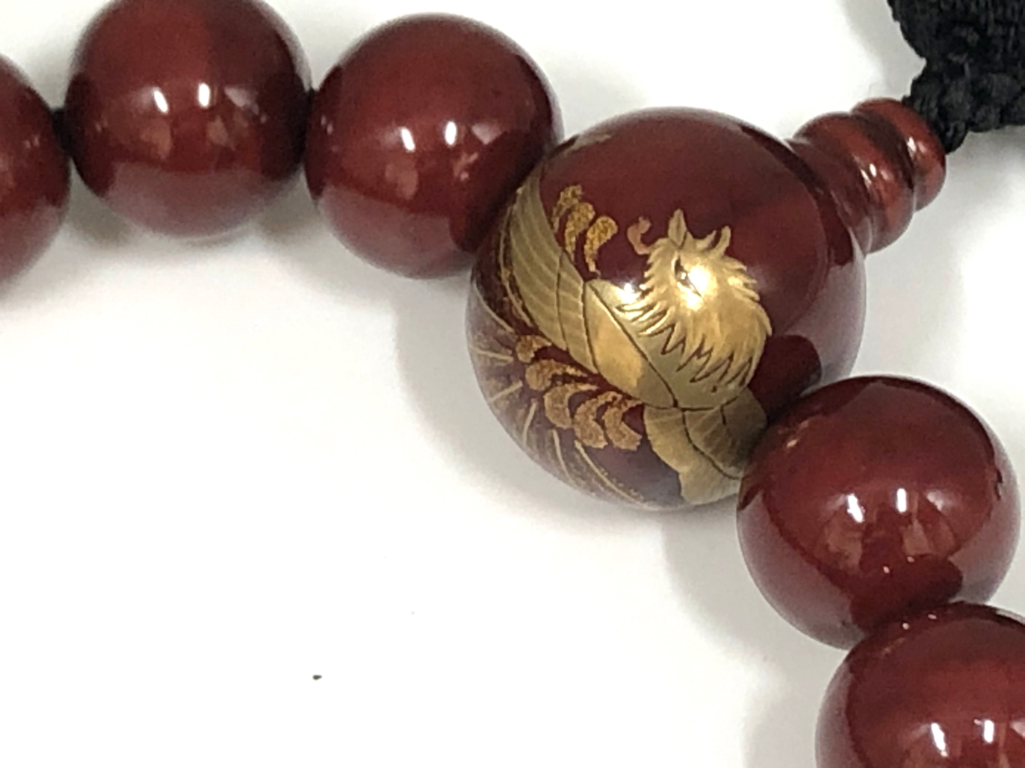 - 輪島うるし塗 念珠(男性用18玉) 溜 鳳凰蒔絵
