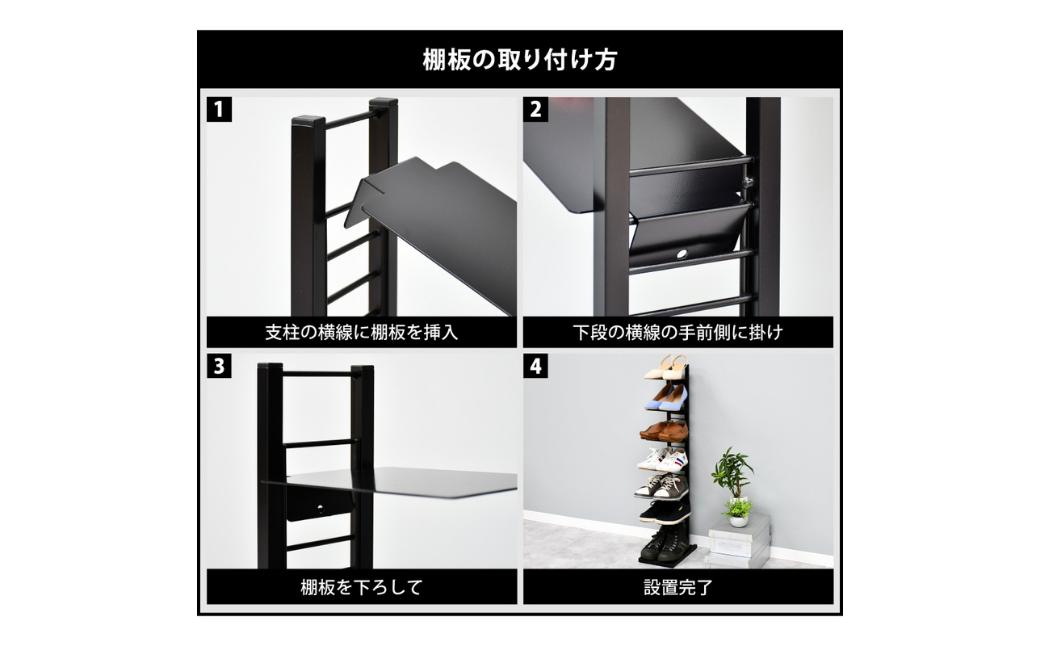 - フロートシューズラック 7足用 ブラック |2389-2 足立製作所 スリム 玄関収納 幅20cm 高さ99.5cm 靴だな 靴棚 シューズ収納 靴収納 おしゃれ靴 可動棚 省スペース 燕三条 新潟 [足立製作所] 【028S022】