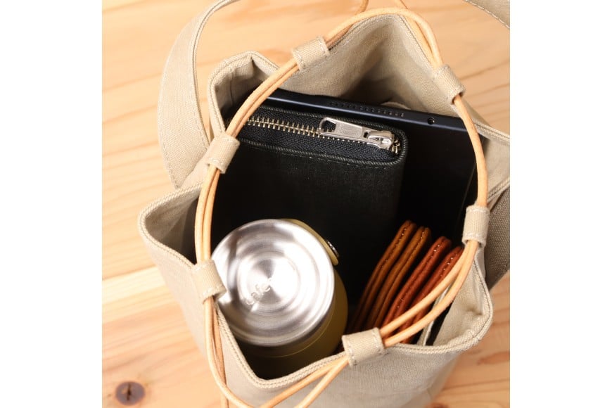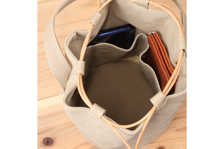 - バッグ 丸底の巾着バッグ L [アトリエSASSA 富山県 朝日町 34310186] 丸底 巾着 鞄 かばん カバン 帆布 革 おしゃれ 手作り シンプル レザー