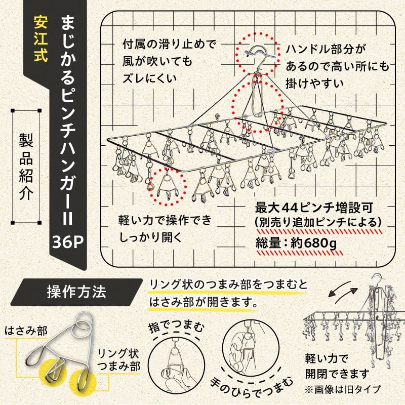 「安江式 まじかる ピンチ ハンガーⅡ 36P(Lサイズ)」 【 超軽量 ハンガー ステンレス ステンレス製 アイデア 便利 簡単 耐久性 新生活 洗濯 家事 タオル バスタオル 靴下 純日本製 国産 シンプル 洗濯バサミ ピンチ 折りたたみ 生活雑貨 丈夫 長持ち 職人】