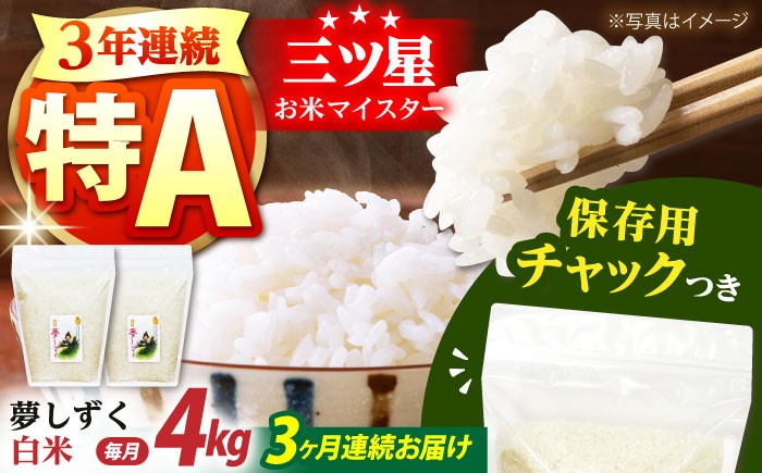 【全3回定期便】佐賀県産 夢しずく 白米 各2kg×2袋<保存に便利なチャック付>【株式会社中村米穀】 [HCU006]