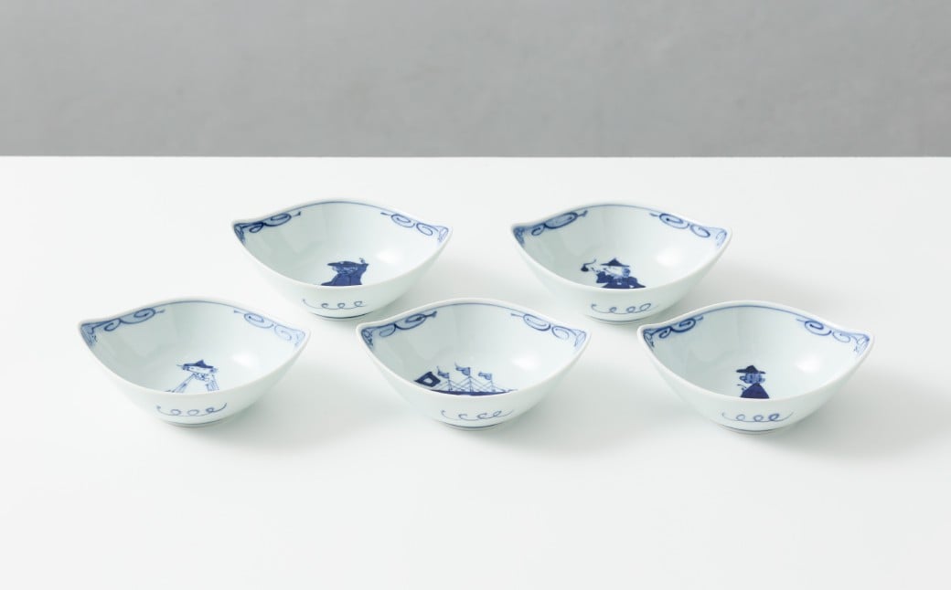 【しん窯】有田焼/絵変り舟型小鉢揃 5枚セット