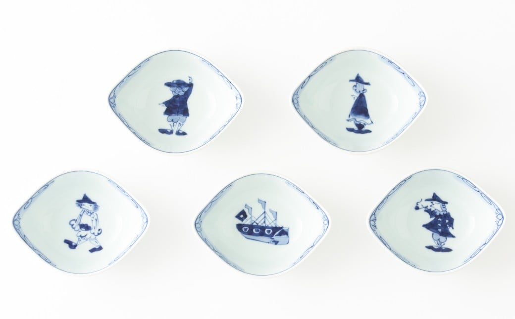 - 【しん窯】有田焼/絵変り舟型小鉢揃 5枚セット