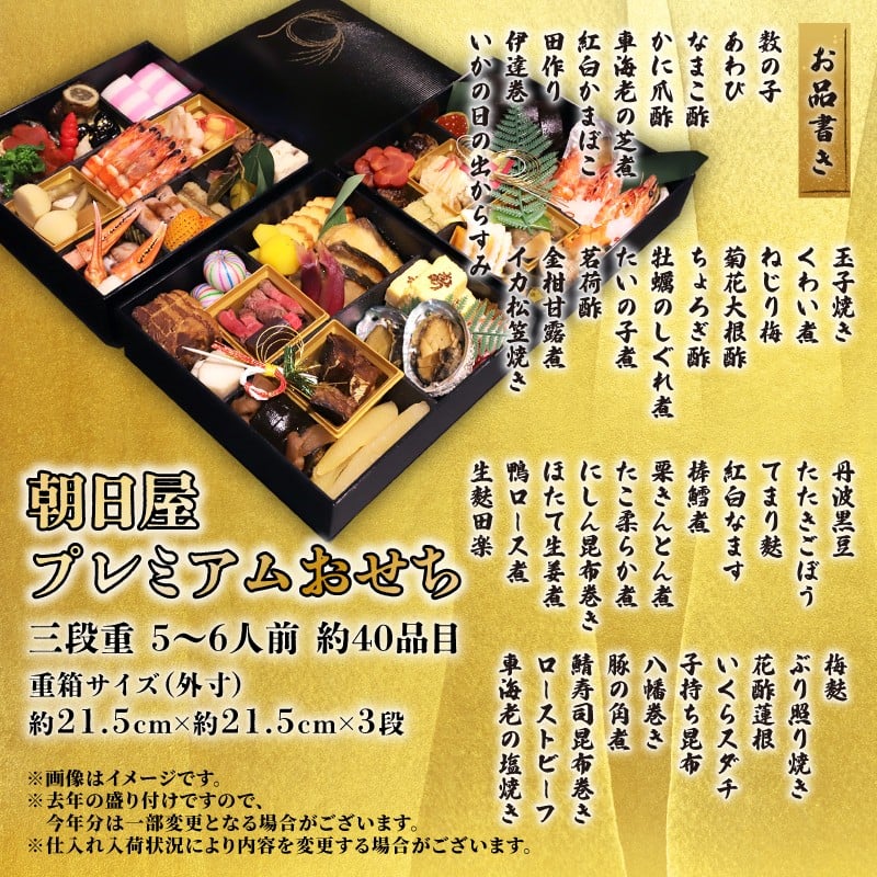 - おせち 2026 朝日屋プレミアムおせち 三段重 3~5人前 2026年1月1日お届け おせち料理 冷蔵 重箱 人気 おすすめ 正月 お正月 新年 お祝い 縁起物 グルメ ご自宅用 京都 朝日屋 先行受付 先行予約 年末配送 元旦お届け 老舗おせち 冷蔵おせち おせち2026 おせち料理2026