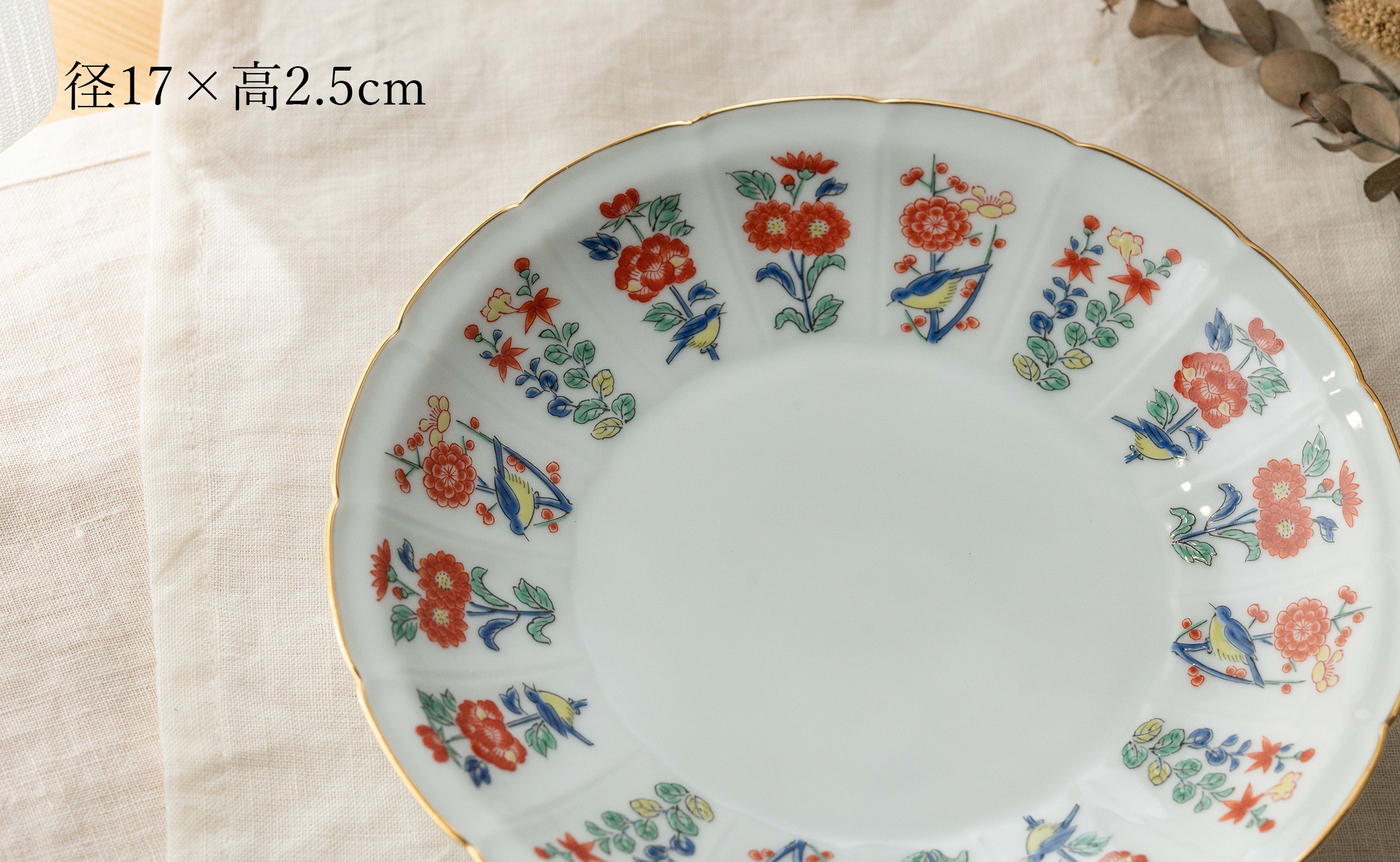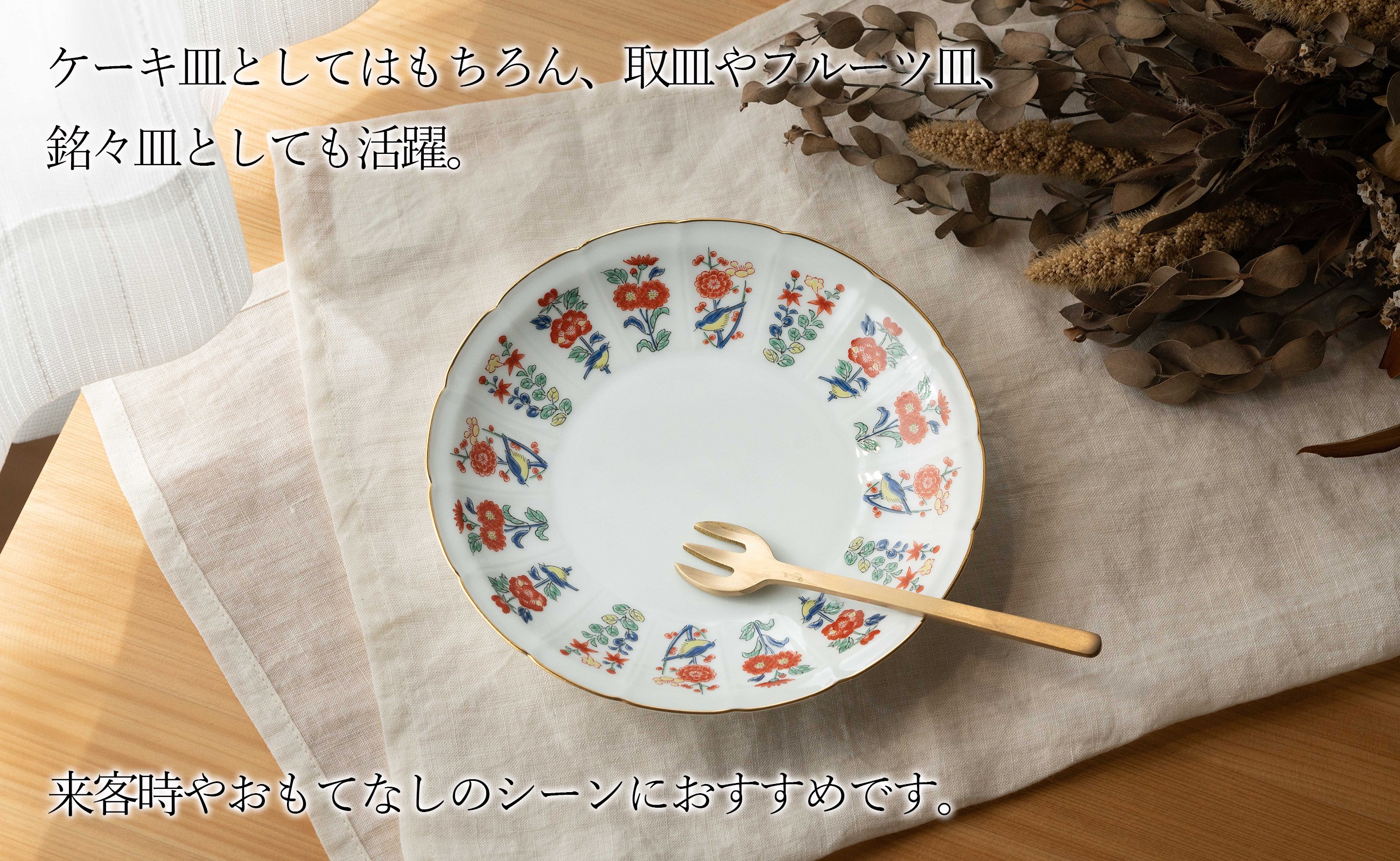 - 有田焼 〈マイセン写し色絵草花文〉 17cm ケーキ皿 小皿 2枚 賞美堂本店