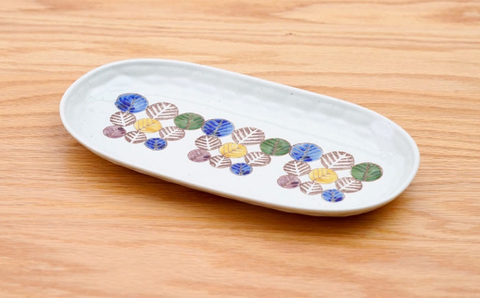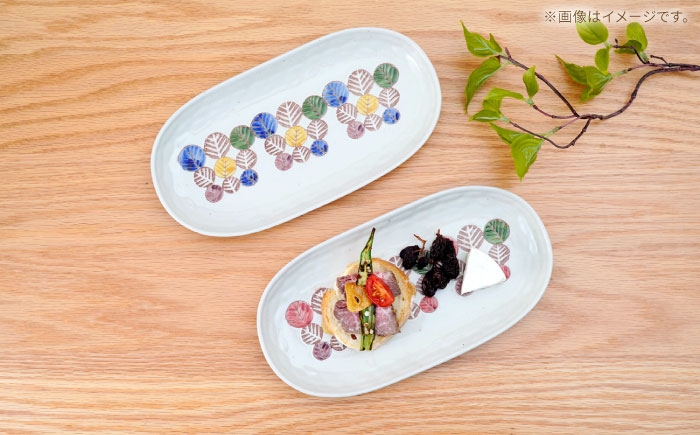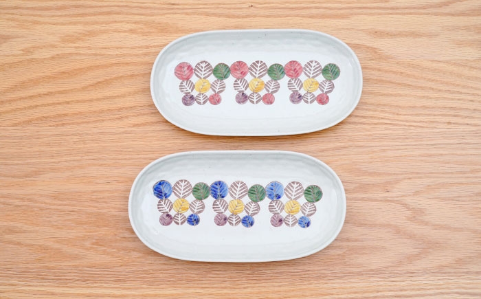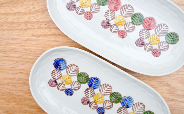 - 【波佐見焼】軽々楕円皿 葉っぱ 2色セット【団陶器】 [PB232]