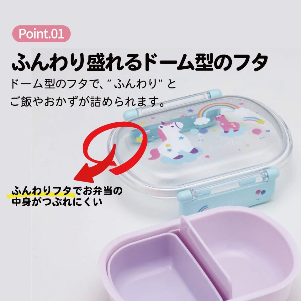 - 抗菌おかずがつぶれにくい ふわっとフタお弁当箱 1段/360ml <スケーター skater>リトルユニコーン/QAF2BAAG_4973307695568 プラスチック 弁当箱 ランチボックス ドーム型フタ 仕切り 中子 パッキン 止具 名前シール付 抗菌加工 食洗機対応 電子レンジ対応 日本製 ユニコーン ユニコーン柄 メルヘン 女の子 女子 奈良県 奈良市 なら 4-116