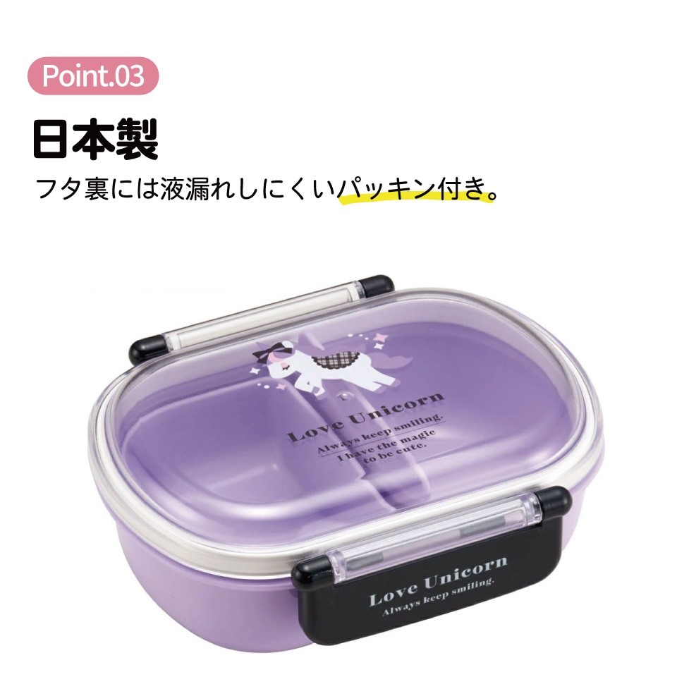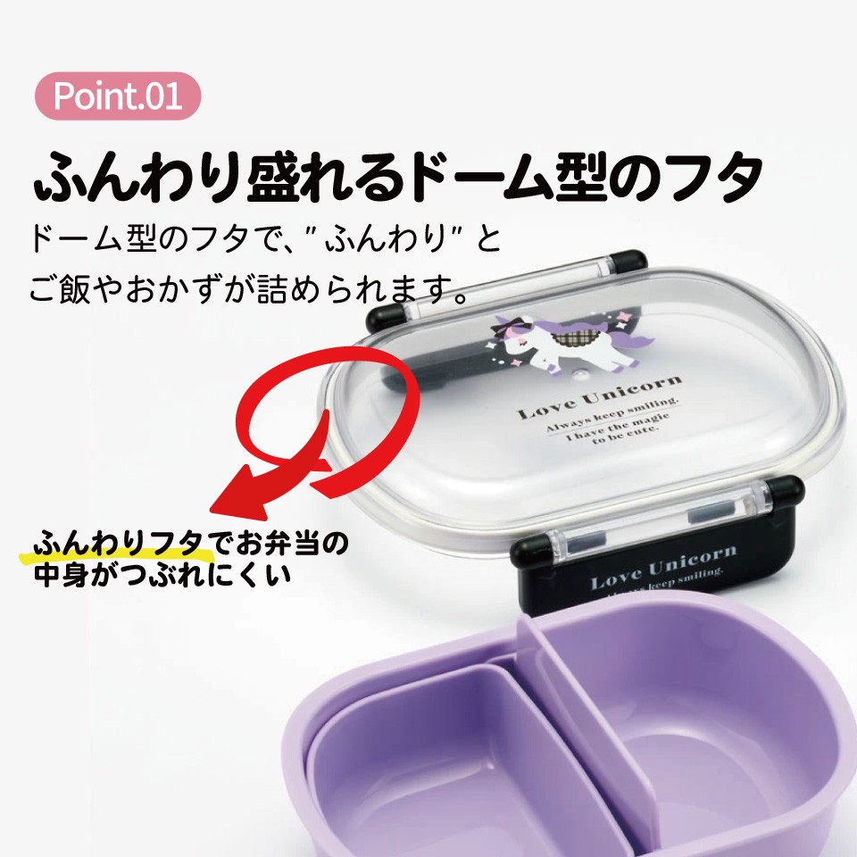 - 抗菌ふわっとフタタイトランチボックス 1段/360ml<スケーター skater>ラブユニコーン/QAF2BAAG_4973307670718/プラスチック 弁当箱 ランチボックス ドーム型フタ 仕切り 中子 パッキン 止具 名前シール付 抗菌加工 食洗機対応 電子レンジ対応 日本製 奈良県 奈良市 なら 4-122