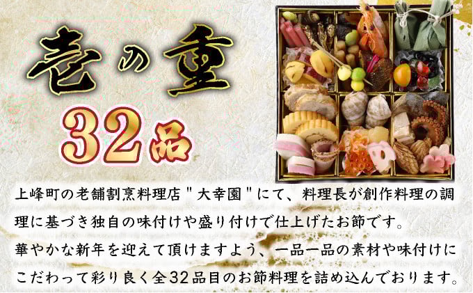 《数量限定予約》【冷凍】老舗割烹料理店”大幸園”「王将おせち」二段重 6.5寸 32品 2~3人前