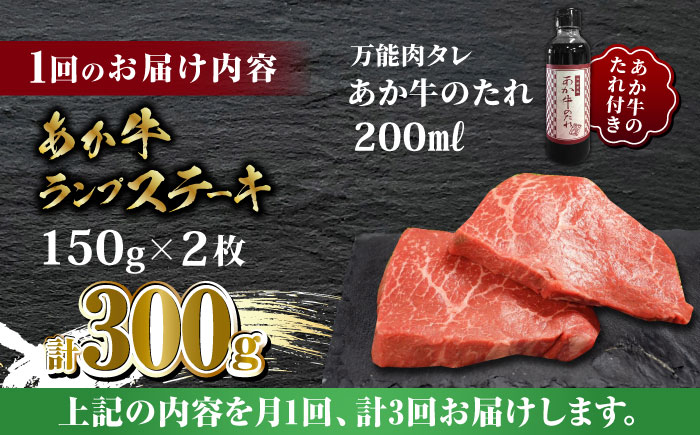 【全3回定期便】あか牛 ランプ ステーキ セット 150g×2枚【有限会社 三協畜産】 赤牛 褐牛 あかうし 褐毛和種 冷凍 国産 牛肉 ランプ ステーキ 定期 [ZEB050]