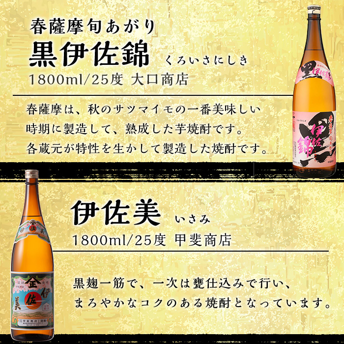 isa584 《数量限定》伊佐焼酎お花見セット!伊佐美・春薩摩旬あがり黒伊佐錦(1800ml×各3本)鹿児島 本格芋焼酎 焼酎 芋焼酎 飲み比べ 小瓶タイプ 詰合せ 詰め合わせ【坂口酒店】