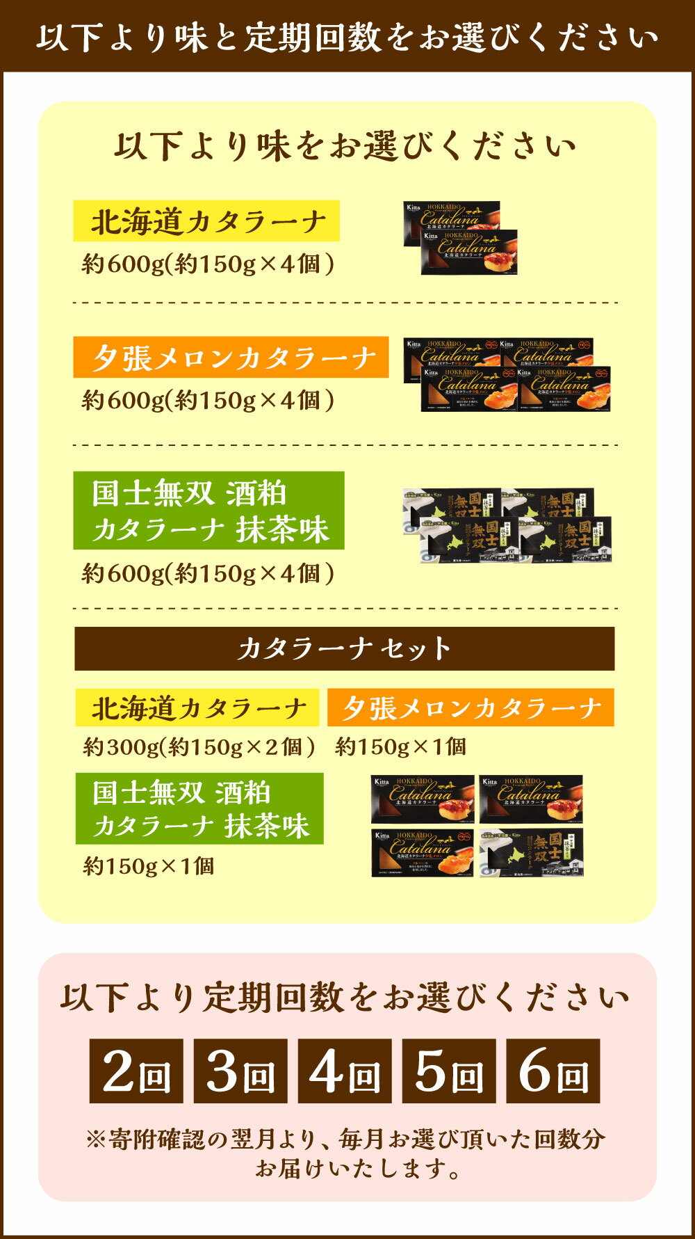 - 【ふるさと納税】<選べる味・定期便>北海道カタラーナ 1回あたり計約600g(約150g×4個) 1ヶ月毎 2回/3回/4回/5回/6回 プレーン / 夕張メロン / 国士無双 酒粕 抹茶味 / 3種セット アイスクリーム キャラメリーゼ スイーツ お菓子 洋菓子 デザート おやつ 冷凍 送料無料