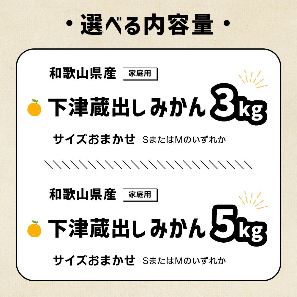 - 【ふるさと納税】【選べる容量】和歌山県産 下津蔵出しみかん 家庭用 3kg or 5kg (サイズおまかせSまたはMのいずれか) 農家直送 手選別 | みかん 蜜柑 フルーツ 果物 くだもの 食品 人気 おすすめ 送料無料 農家直送 手選別 和歌山県産 下津蔵出しみかん