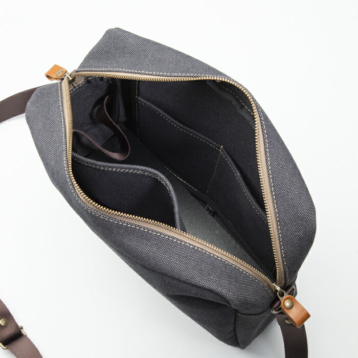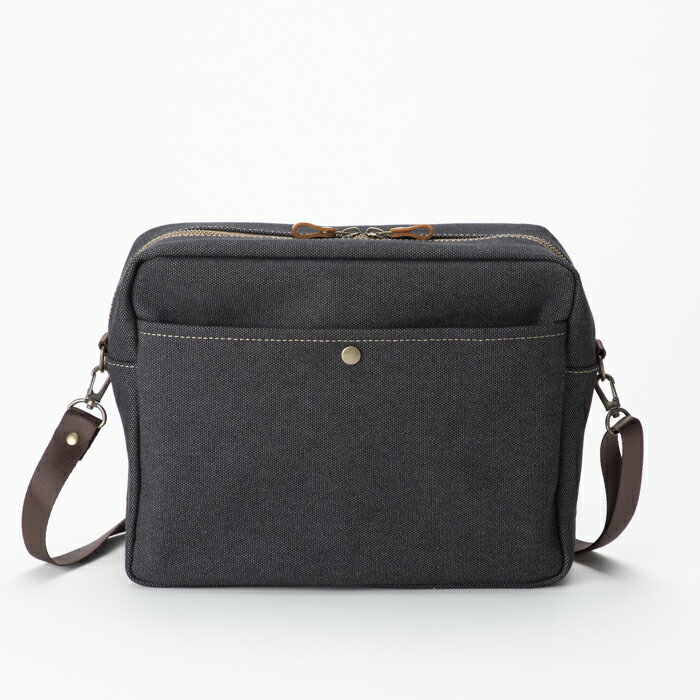 - 【ふるさと納税】【J-248】kii工房 帆布かばん ボックスショルダーLサイズ 先染め黒【高島屋選定品】