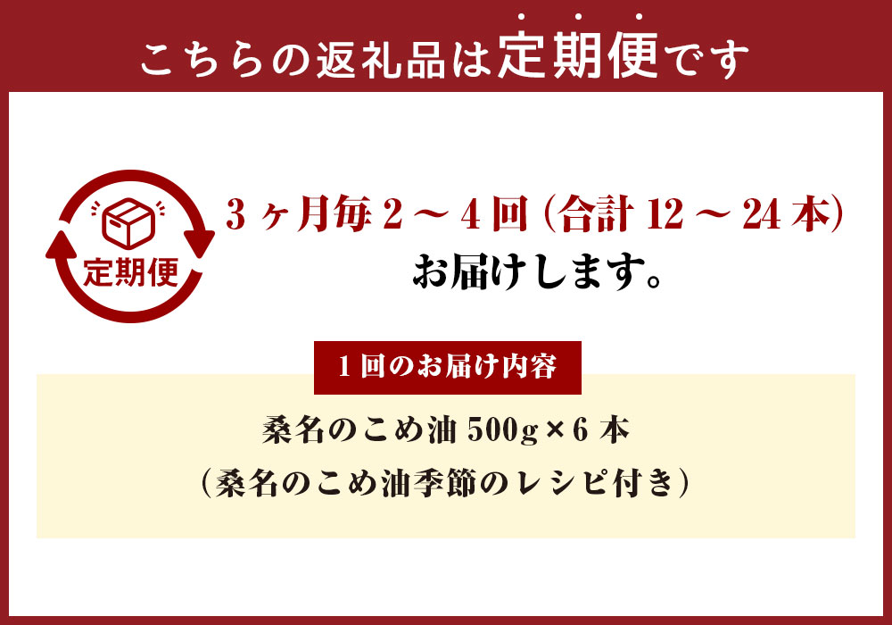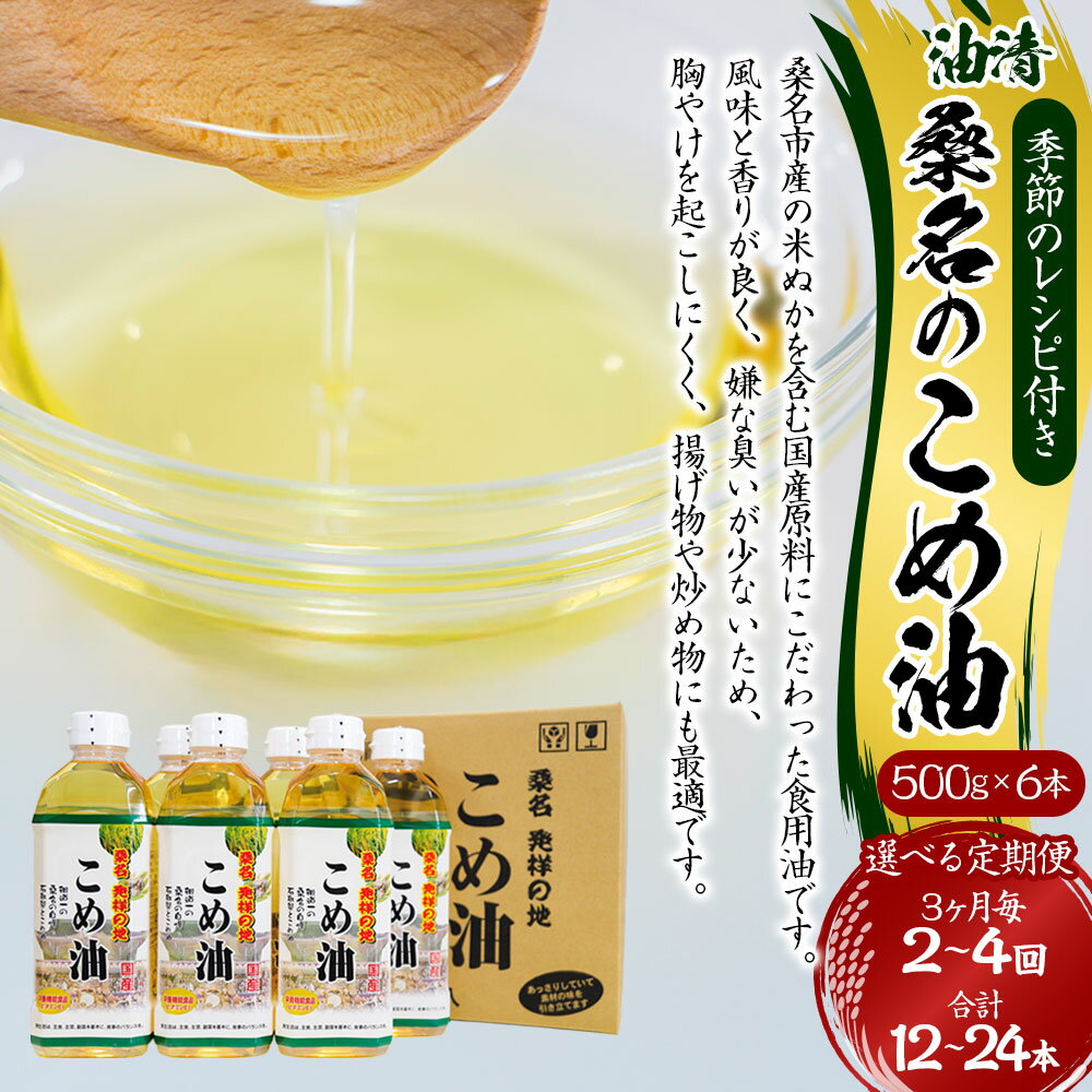 - 【ふるさと納税】<選べる定期便>油清 桑名のこめ油 1回あたり計3kg(500g×6本入り) 桑名のこめ油季節のレシピ付き 3ヶ月毎 2回 / 3回 / 4回 米油 油 あぶら 米ぬか ビタミンE 食用油 調味料 揚げ物 炒め物 保健機能食品 健康 国産 三重県 桑名市 送料無料