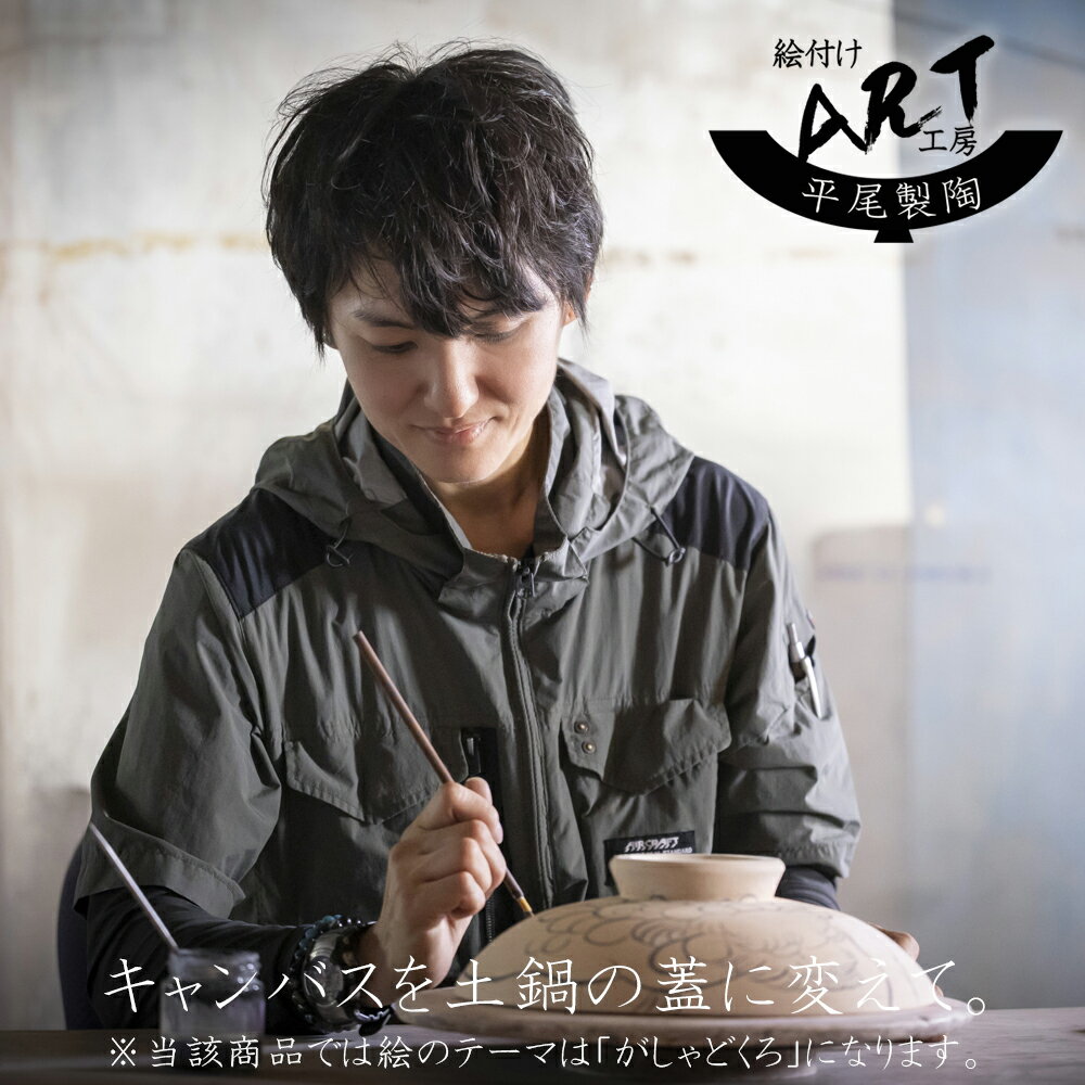 【ふるさと納税】暮らしの美術品 絵付けアーティストの個性が光るHandmade土鍋。絵付けART工房・平尾製陶 9寸 破墨彩土鍋 「がしゃどくろ」【手描き 土鍋 ハンドメイド アート デザイン 鍋 家庭用 4人用 4人前 家族 冬 煮込み 手芸 工芸 三重県 四日市市 ふるさと納税】