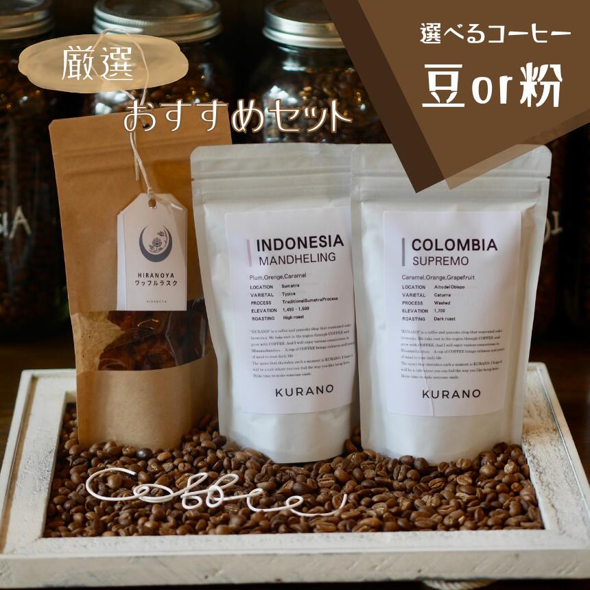 【ふるさと納税】 KURANO coffee 自家焙煎 コーヒー マイスター こだわり コーヒー 100g×2種 と ワッフル ラスク 1袋【選べるセット】 | コーヒー 豆 粉 焙煎 ワッフルラスク ご褒美 ギフト 贈り物 飲料 お菓子 長野県 飯田市