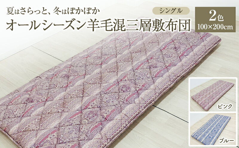 - 【ふるさと納税】夏はさらっと、冬はぽかぽか、オールシーズン羊毛混三層敷布団 100×200cm 寝具 敷き布団 布団 シングル 新潟市 新潟