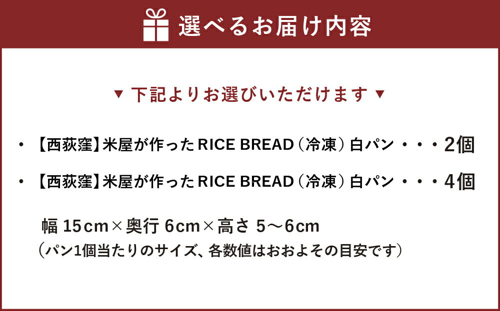 - 【ふるさと納税】【西荻窪】<選べる個数>米屋が作ったRICE BREAD(冷凍) 白パン 2個入り / 4個入り パン 精白米 お米 こめ 米油 こめ油 小麦粉・乳・卵不使用 国産 東京都 杉並区 送料無料