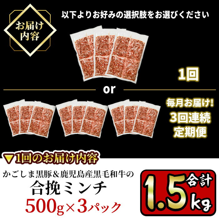 【ふるさと納税】<配送回数選べる>かごしま黒豚&鹿児島産黒毛和牛の合挽ミンチ(計1.5kg・500g×3P / 計4.5kg・500g×3P×3回) 国産 九州産 牛肉 黒毛和牛 和牛 お肉 ミンチ ミンチ肉 黒豚 豚肉 ぶた肉 お肉 合挽き ハンバーグ 【財宝】