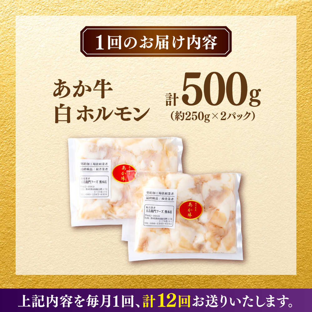 - 【ふるさと納税】【全12回定期便】あか牛 白 ホルモン 500g (250g×2P) 【合同会社 長岡フーズ】[ZFR052]