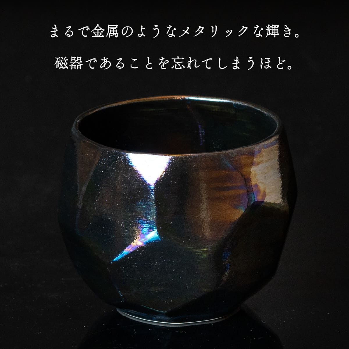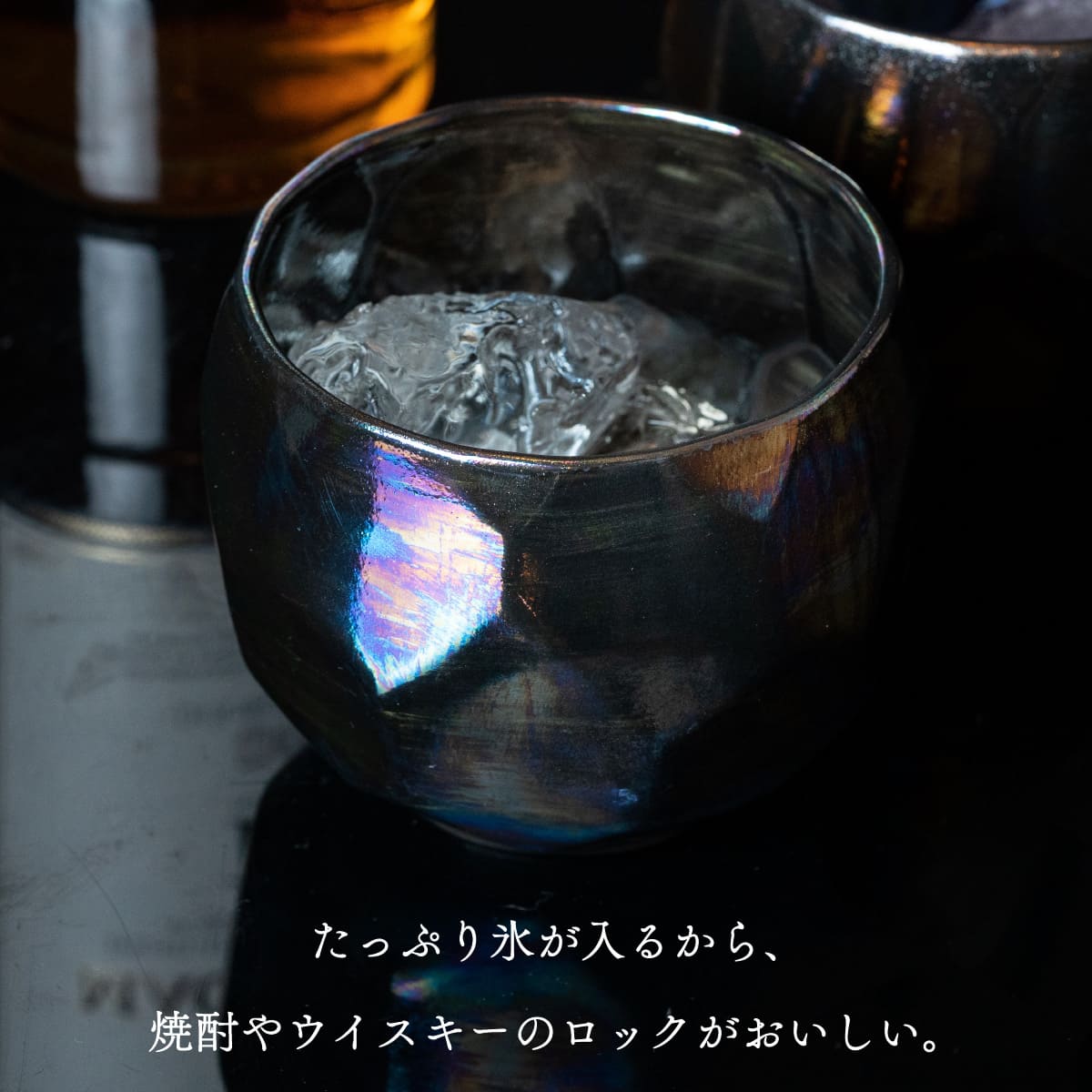 - 【ふるさと納税】【晩酌を華やかに】メタリックな有田焼 ロックカップ(面取り) 黒色 2個セット 女性にも人気 【喜鶴製陶】軽量 ギフト ペアセット 食器 有田焼 ロックグラス ビアカップ タンブラー A18-208