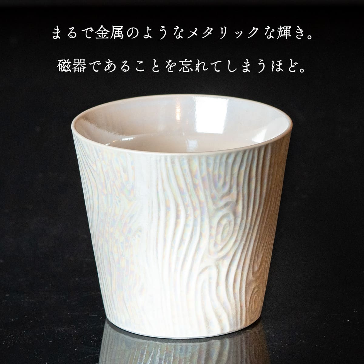 【ふるさと納税】【晩酌を華やかに】メタリックな有田焼 ロックカップ(木目) 白色 2個セット 女性にも人気 【喜鶴製陶】軽量 ギフト ペアセット 食器 有田焼 ロックグラス ビアカップ タンブラー A20-639