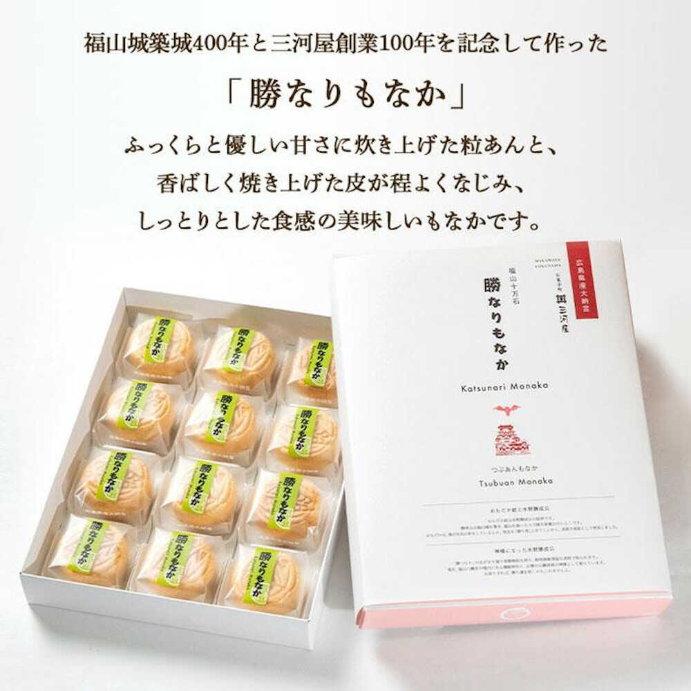 【ふるさと納税】菓子 福山城築城400年記念菓「勝なりもなか」 (12個) 菓子 お取り寄せ あんこ ギフト 手作り おすすめ 人気 和菓子 最中 詰め合わせ 個包装 手土産 贈り物 お茶請け 銘菓 粒あん 送料無料 お取り寄せスイーツ 広島県福山市/株式会社三河屋菓子[BADJ001]