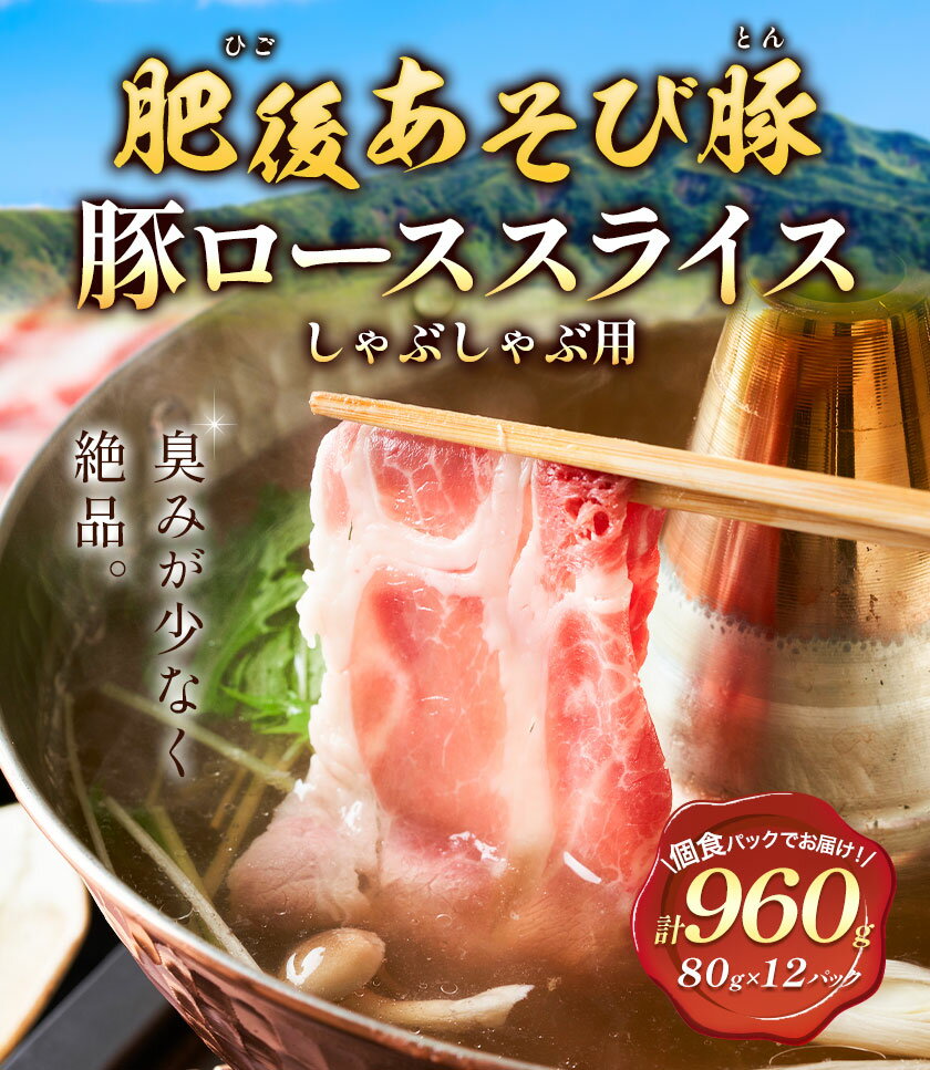 【ふるさと納税】肥後あそび豚 しゃぶしゃぶ用 豚ローススライス 80g×12パック 合計960g 株式会社さつま屋産業 ぶた ブタ 豚肉 肉 ブランド豚 ロース肉 スライス 小分け 国産 九州産 熊本県産 菊池市産 冷凍 送料無料 《90日以内に出荷予定(土日祝除く)》