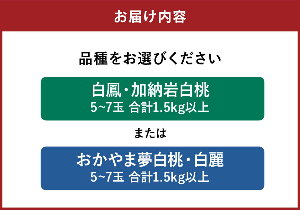 【ふるさと納税】岡山白桃 5~7玉(合計1.5kg以上) <選べる品種> 白鳳 / 加納岩白桃・おかやま夢白桃 / 白麗 桃 もも モモ フルーツ 果物 果実 くだもの 冷蔵 岡山県産 国産 岡山県 倉敷市 送料無料 【2026年7月上旬~7月下旬もしくは8月上旬迄順次発送予定】