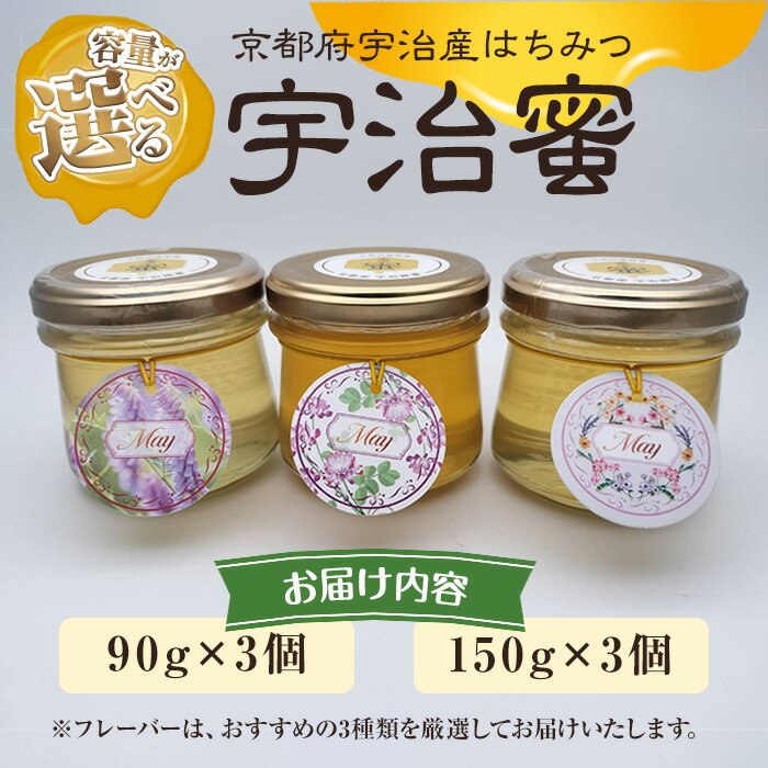 - 【ふるさと納税】<容量が選べる>おまかせ!宇治蜜 京都 宇治産 はちみつセット(90g・150g/計3種・3個)蜂蜜 はちみつ ハチミツ 非加熱 【uj-DH001】【久保田養蜂場】