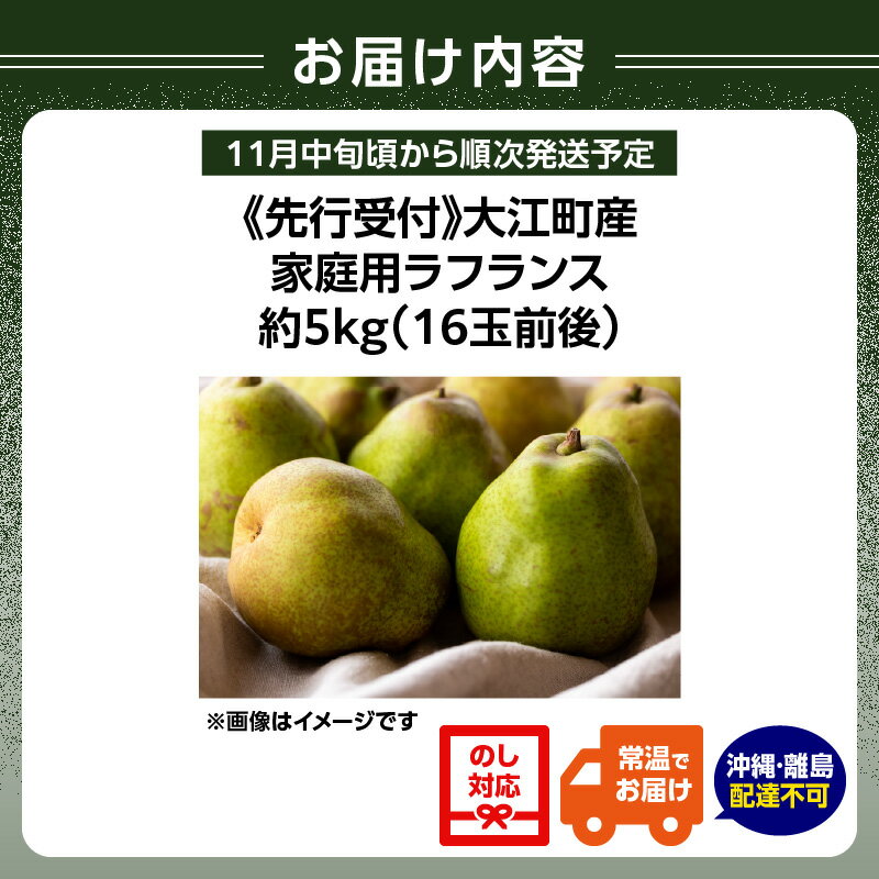 - 【ふるさと納税】大江町産 ラフランスご家庭用 5kg箱 16玉前後 ラフランス 山形 大江町 産地直送 家庭用 訳あり 5kg 5キロ 果樹園 直送 西洋梨 甘い 香り豊か 新鮮 フルーツ