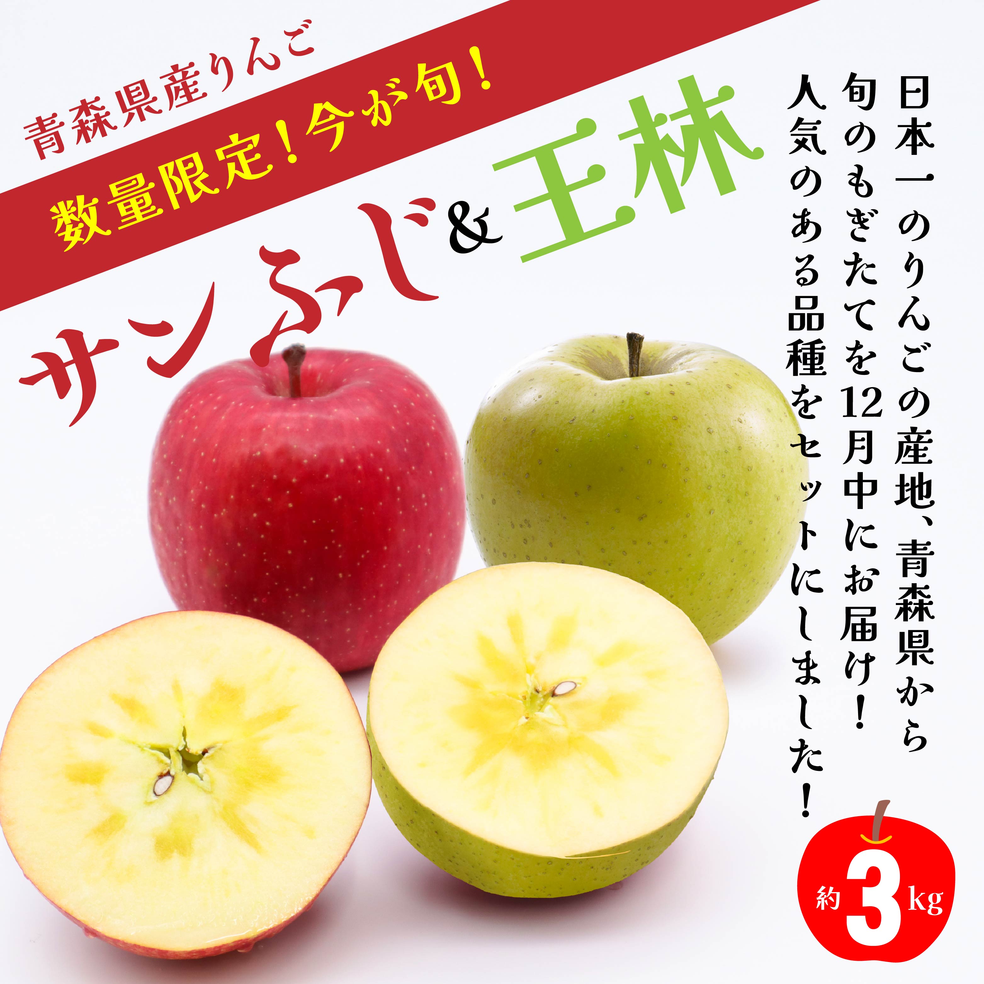 - 【ふるさと納税】12月中にお届け! 青森県産 サンふじ 王林 りんご 3kg おうりん 林檎 果物 フルーツ セット 詰合せ 年内配送 家庭用 贈答用 送料無料