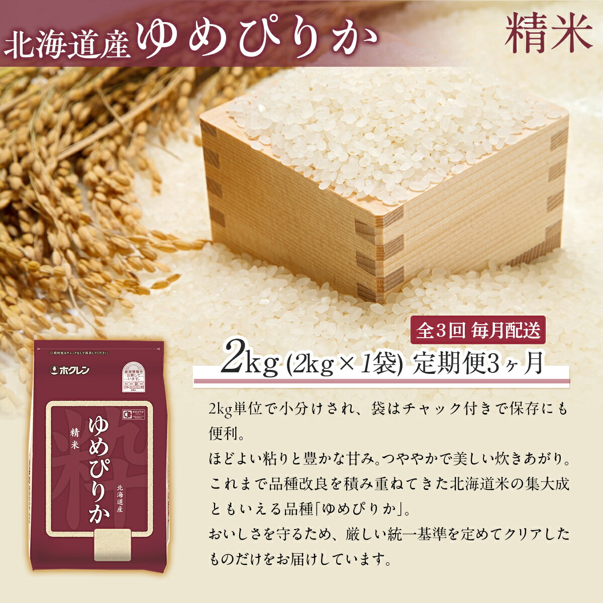 【ふるさと納税】【令和7年産】 【3ヶ月定期配送】(精米2kg)ホクレンゆめぴりか 【 ふるさと納税 人気 おすすめ ランキング 米 コメ こめ お米 ゆめぴりか ご飯 白米 精米 国産 ごはん 白飯 定期便 北海道 むかわ町 送料無料 】 MKWAI006