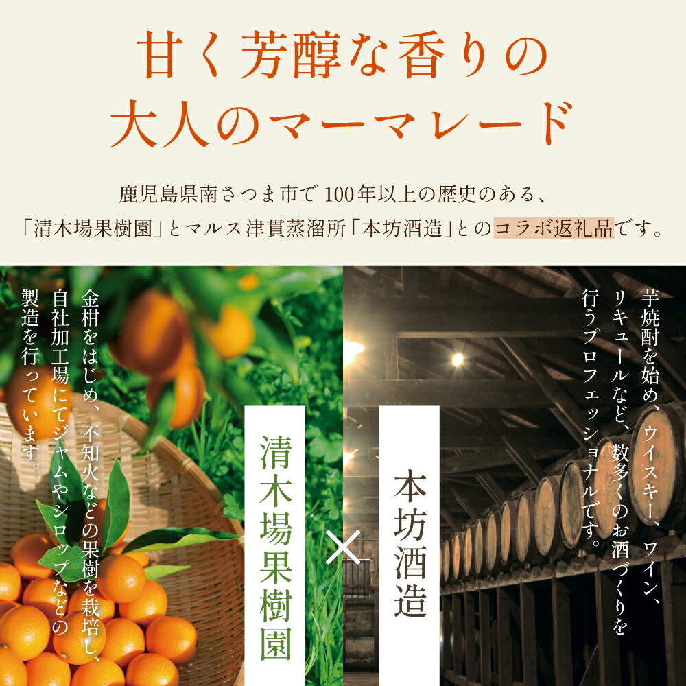 - 【ふるさと納税】清木場果樹園 柑橘マーマレード 3種類 セット [本坊酒造 シングルモルト津貫]ウイスキー使用 金柑 甘夏 河内晩柑 ジャム パンやヨーグルトに フルーツ 3本 瓶入り プレゼント ギフト 贈答用 贈り物 手土産 南さつま市 送料無料