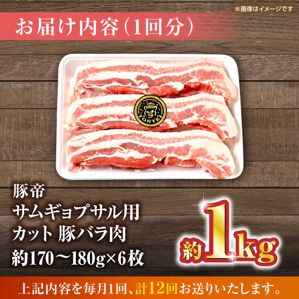 - 【ふるさと納税】【全12回定期便】豚帝 バラ肉 サムギョプサル カット 約1kg(1枚約170〜180g×6枚)【KRAZY MEAT(小田畜産)】[ZCP156]